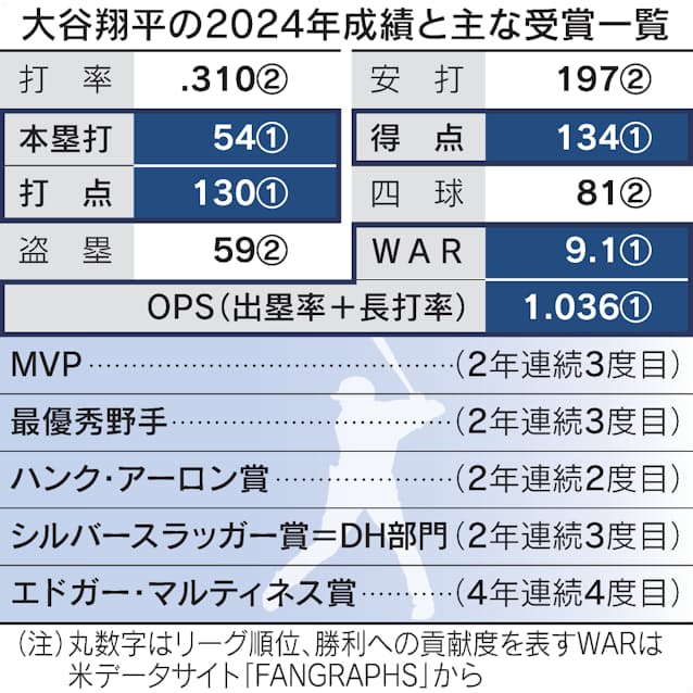 ドジャース大谷翔平がMVP、2年連続3度目 DH専任で史上初 - 日本経済新聞。