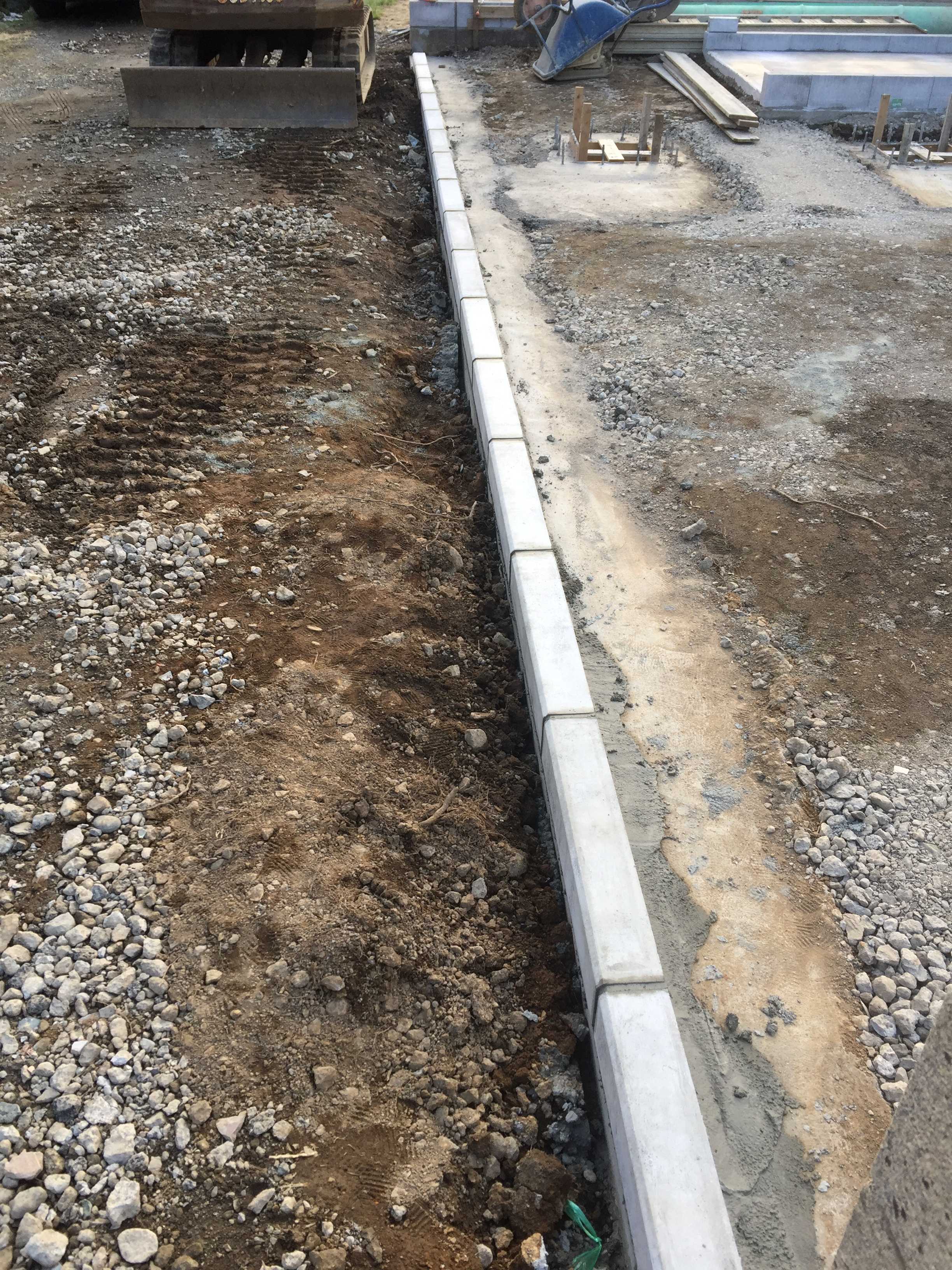 縁石設置完了❗土止め作業と外構ブロック施工の様子。
