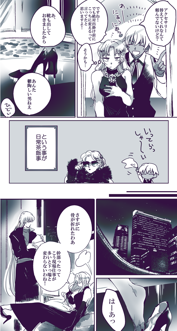 次の新刊で色んなキャラ出す予定でどうしてもベルモットも入れたかったんだけフミ さんのマンガツイコミ 仮。