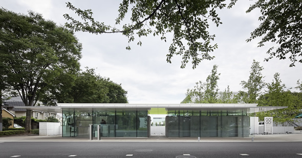 ガラス制振壁”によるミニマムな守衛所:case10:大林組技術研究所本館 テクノステーション - AGC Glass Plaza。