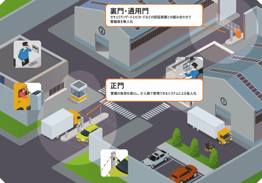 工場出入口の無人化、省人化 - パブリックシステム。