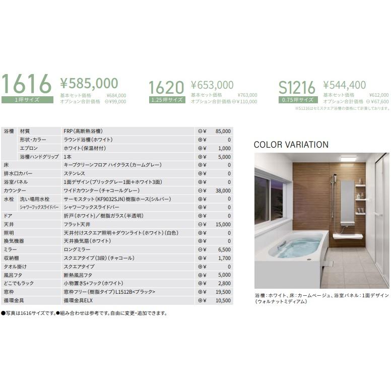 新製品タカラスタンダードシステムバスグランスパフロアこだわりプラン1616商品定価¥728,750- 税込商品+組立工事のセット販売のみになります。
