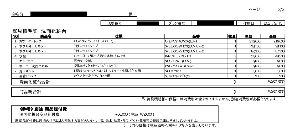 タカラスタンダード 見積もり そして原価予想。 - 沖縄へ移住する。