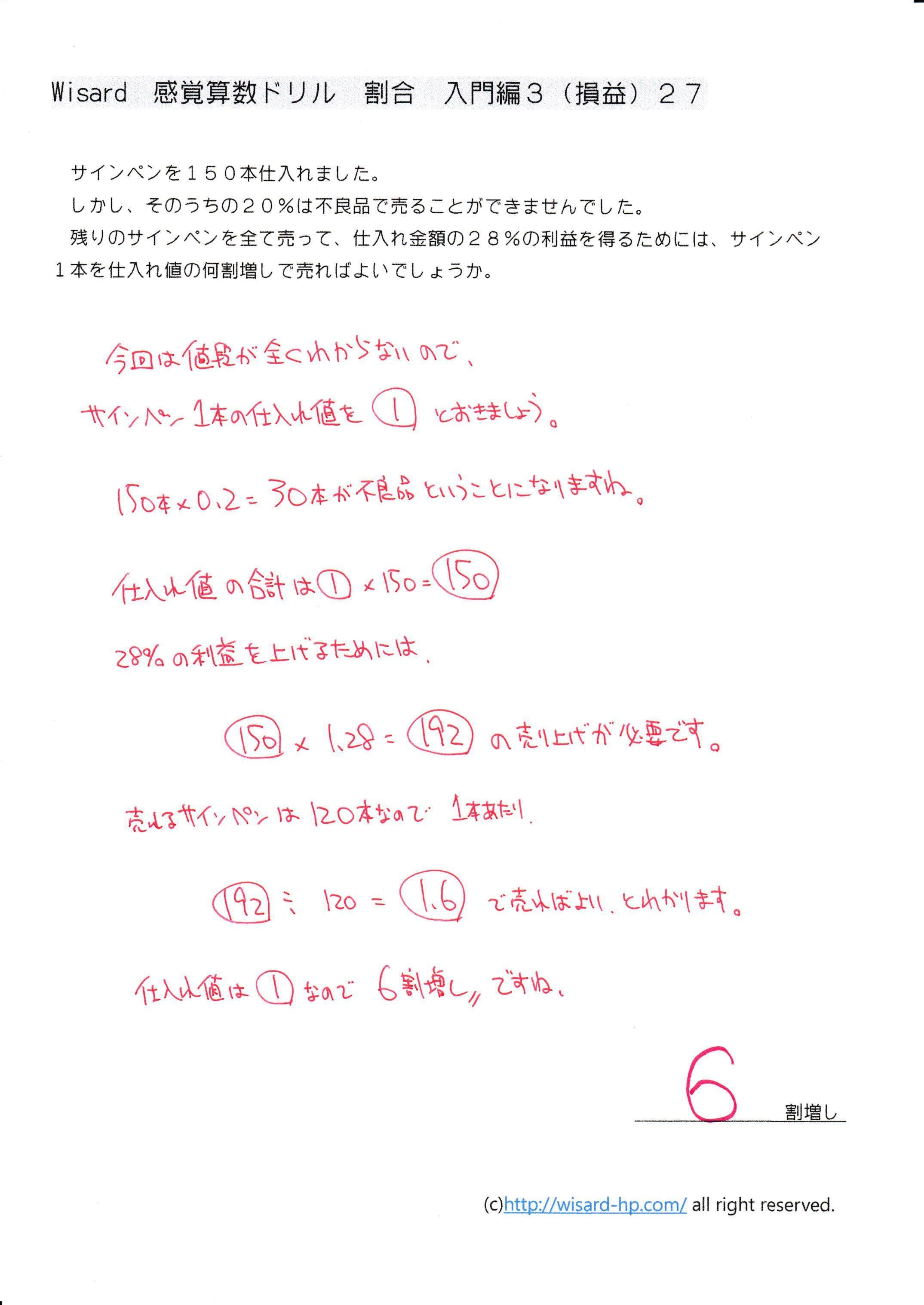 感覚算数ドリル 割合 入門編3 損益WISARDNET中学受験算数を攻略する教材サイト。