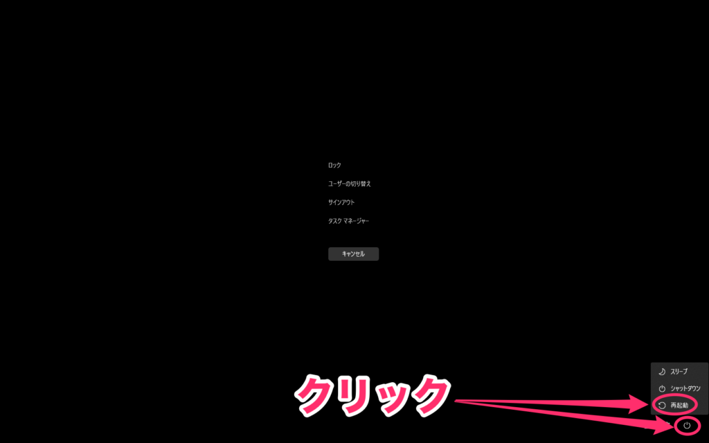 Windows 画面が真っ黒になってしまったときの対処方法。