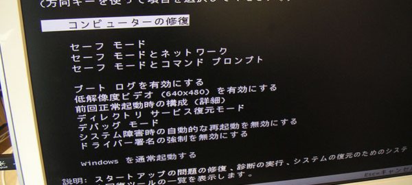 パソコンが起動しない・黒い画面で停止したときのトラブルシューティングアドバンスデザイン。