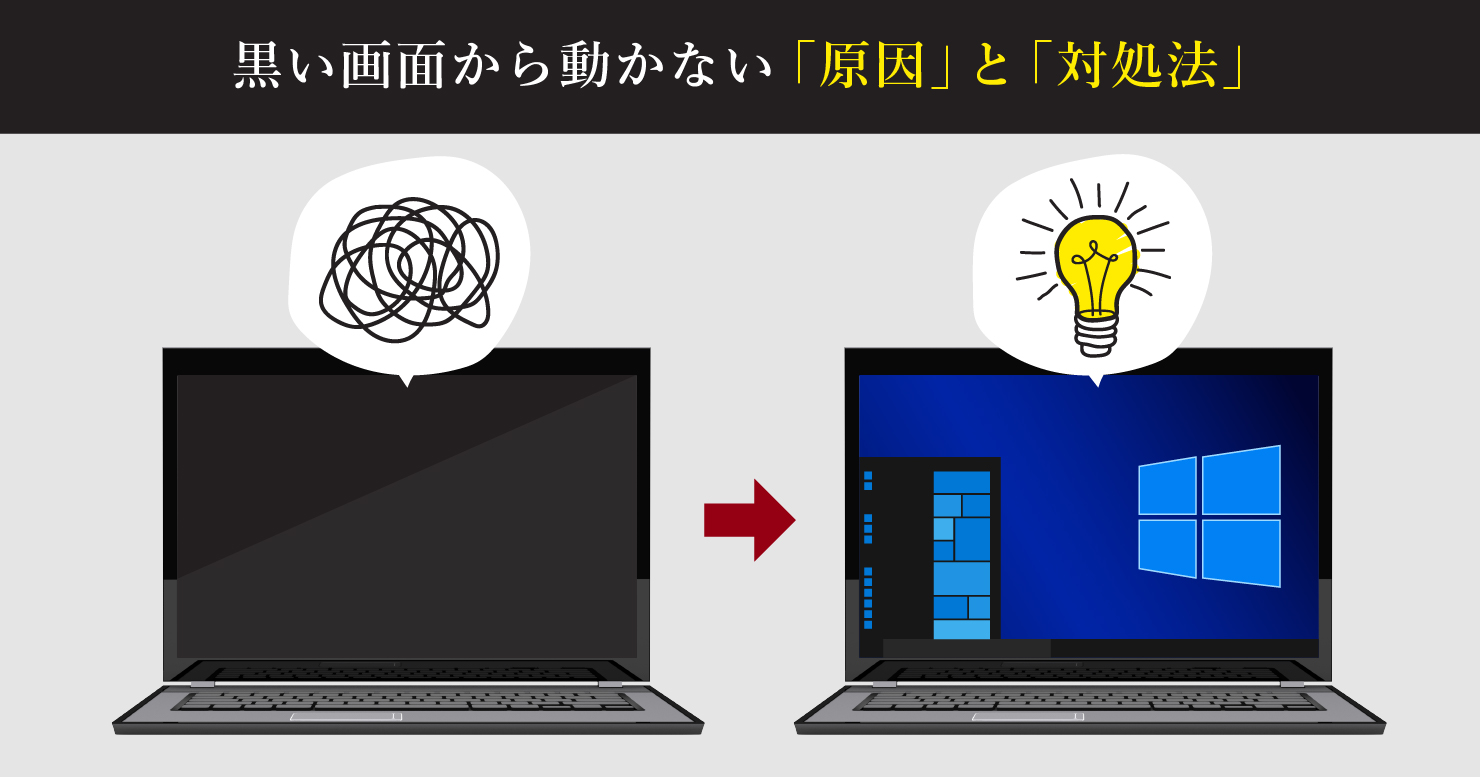 黒い画面のままパソコンが起動しない!症状別に原因と対処法を解説パソコン・スマホのレスキューガイド。