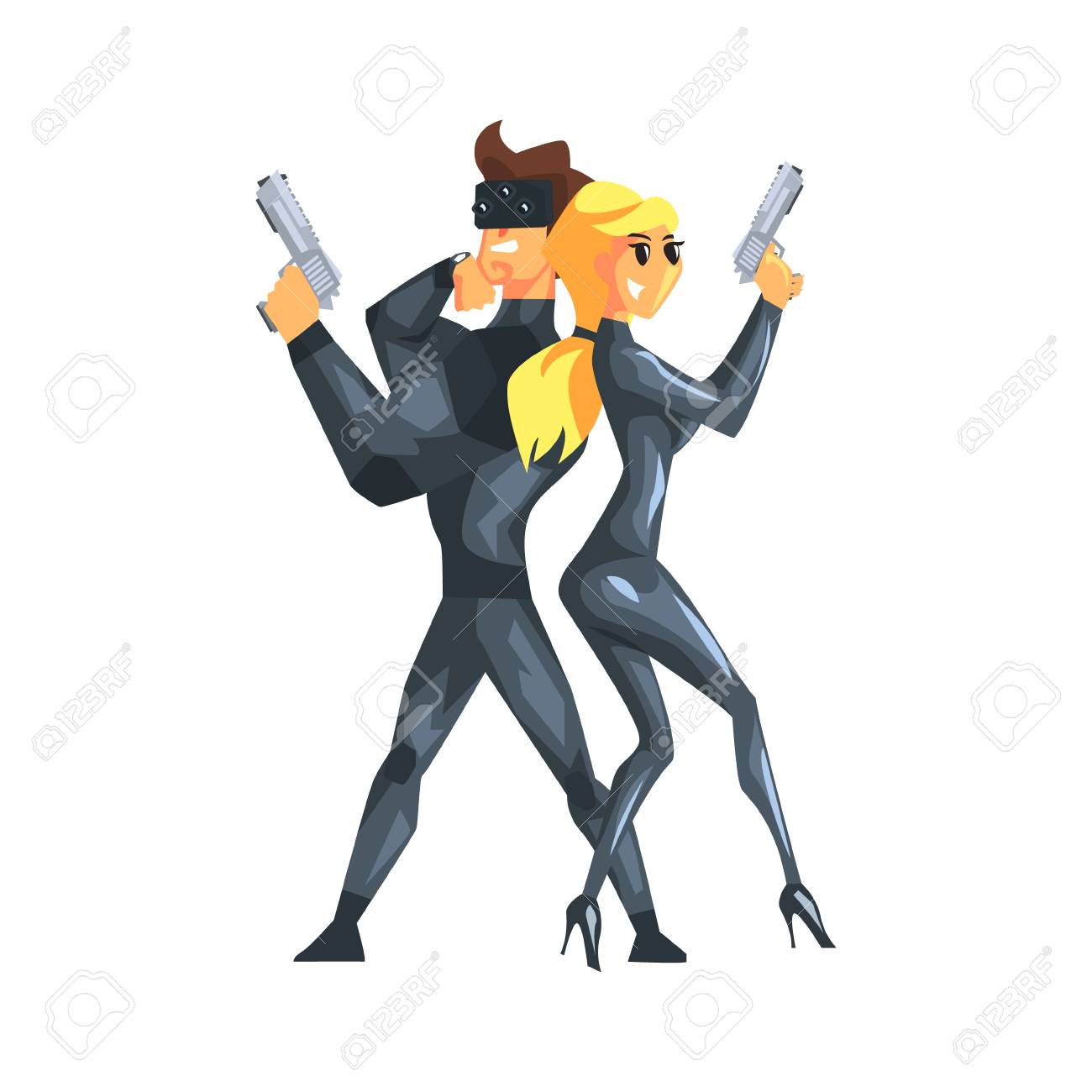 銃、ベクトルイラストと背中合わせに立っているシークレットサービスエージェントのイラスト素材・ベクター Image 177102258。