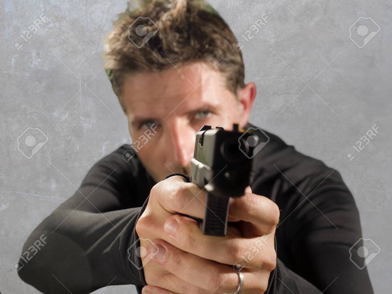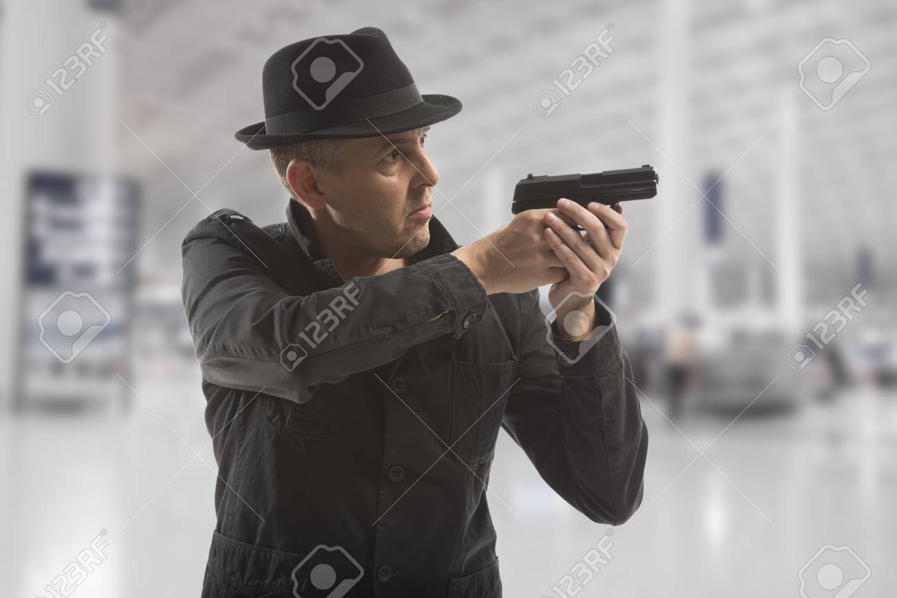 灰色の背景に銃を持つシークレット サービスの男の写真素材・画像素材 Image 27241748。