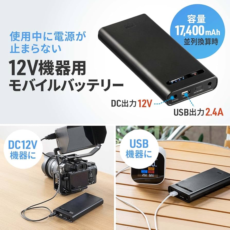 モバイルバッテリー サンワサプライ 日本製 12V 17400mAh 大容量 Amazonサンワダイレクト モバイルバッテリー DC12V。