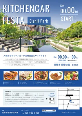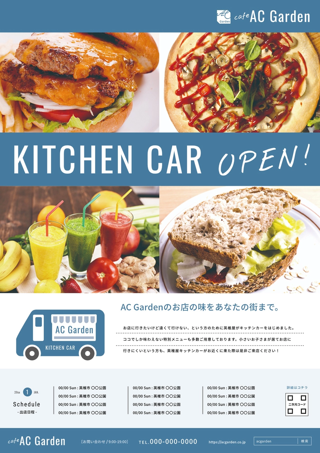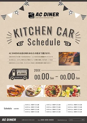 シンプルなキッチンカーをお知らせするチラシの無料チラシテンプレート 11383 - デザインAC。