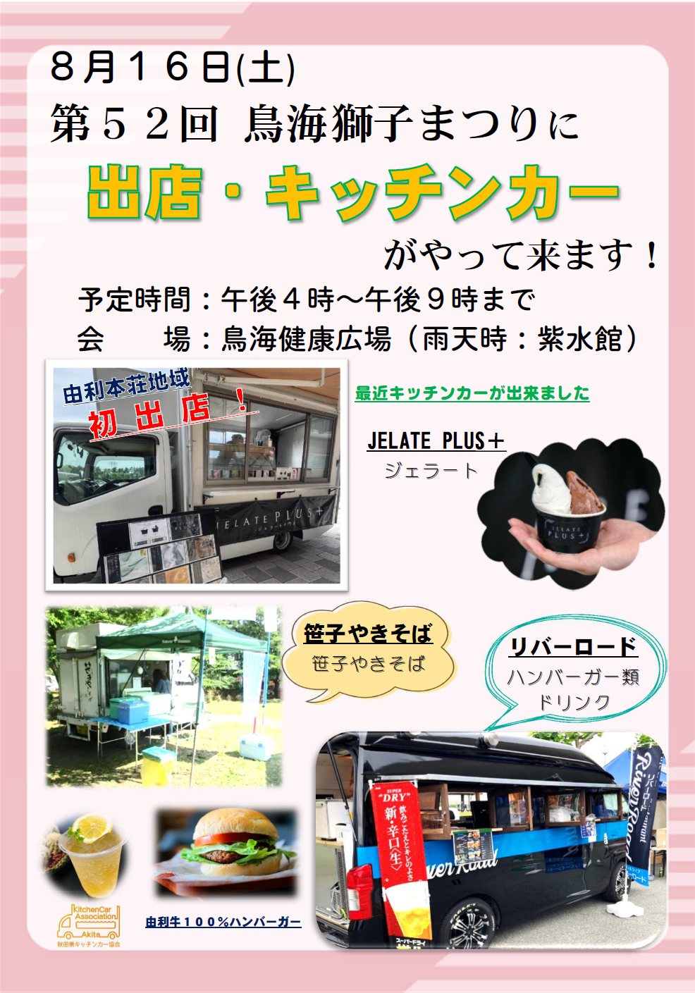 鳥海獅子まつりキッチンカーチラシ1 – 由利本荘市観光協会。