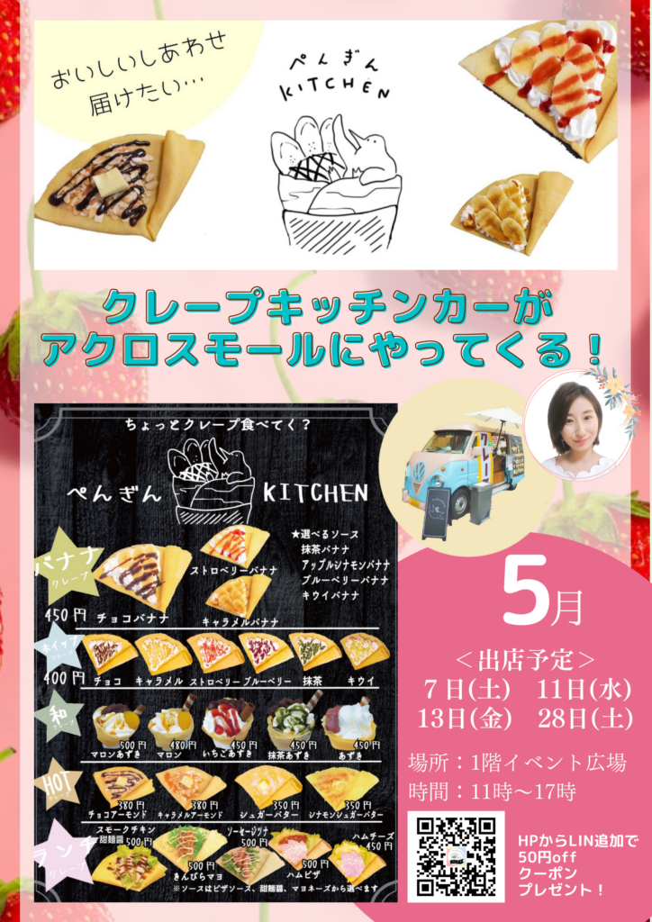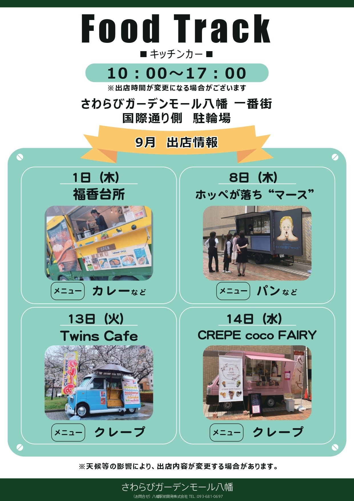 5月キッチンカー出店情報!お知らせさわらびガーデンモール八幡。