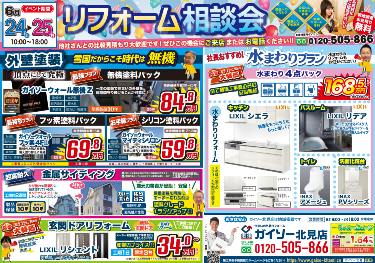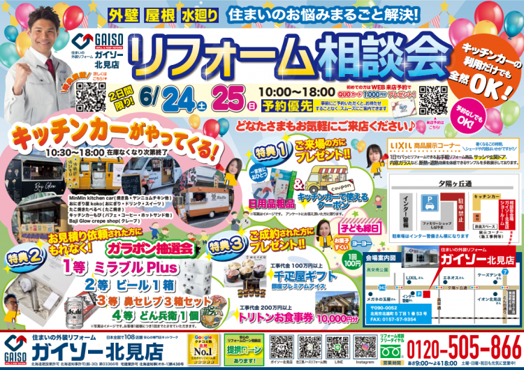 6月23日折込チラシ キッチンカーがやってくる!リフォーム相談会ガイソー北見店住まいの外装リフォーム専門店。