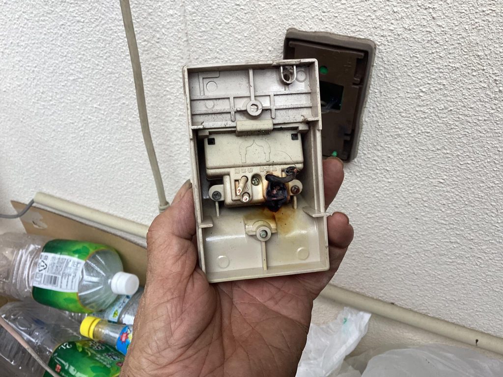 発火!!緊急工事 コンセントショートによる断線修理エーアイデザイン - くらしのマーケット。