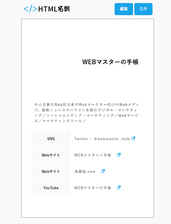 超シンプルな自己紹介ページが作れる「HTML名刺」WEBマスターの手帳。