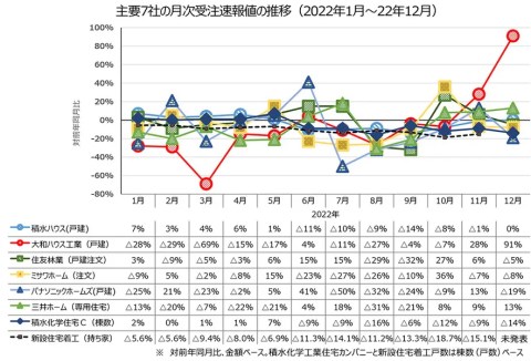 トレンドナビ 大手住宅7社の戸建て受注=0%前後で低調推移、コロナ禍や価格改定が単月受注に影響住宅産業新聞。