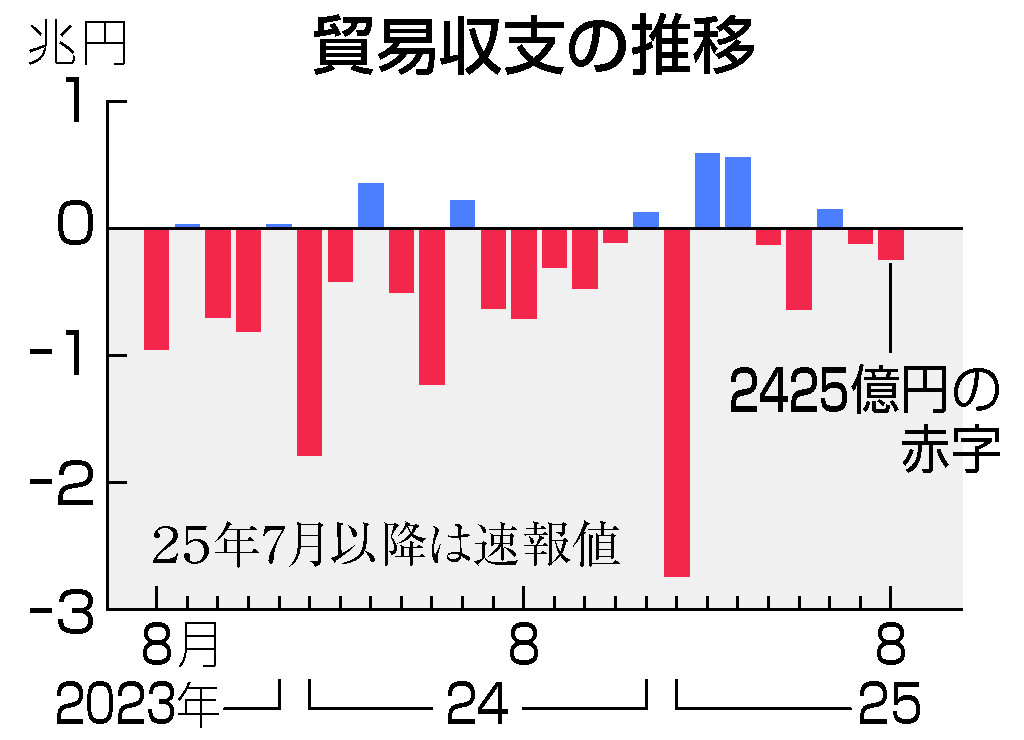8月の対米輸出13.8%減、自動車低調=全体では貿易赤字2425億円時事通信ニュース。