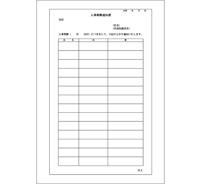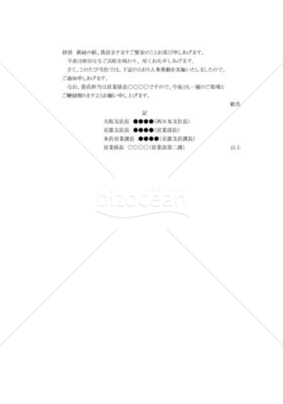 人事異動の通知状001bizocean ビズオーシャン。