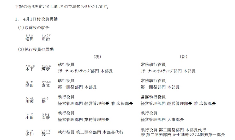 4月1日付 人事異動のお知らせ。株式会社シンコー警備保障。