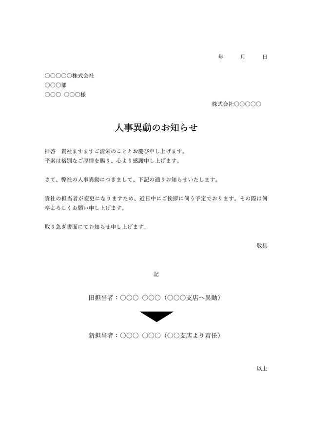 人事異動のご案内」のテンプレート―社外通知用の例文つきWordファイルを無料ダウンロード│無料ダウンロード『日本の人事部』。