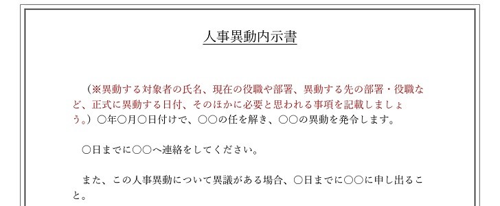 人事異動内示書テンプレート!書式・フォーマットも分かりやすい!無料でダウンロード! ワード・エクセル・PDFテンプレボール。