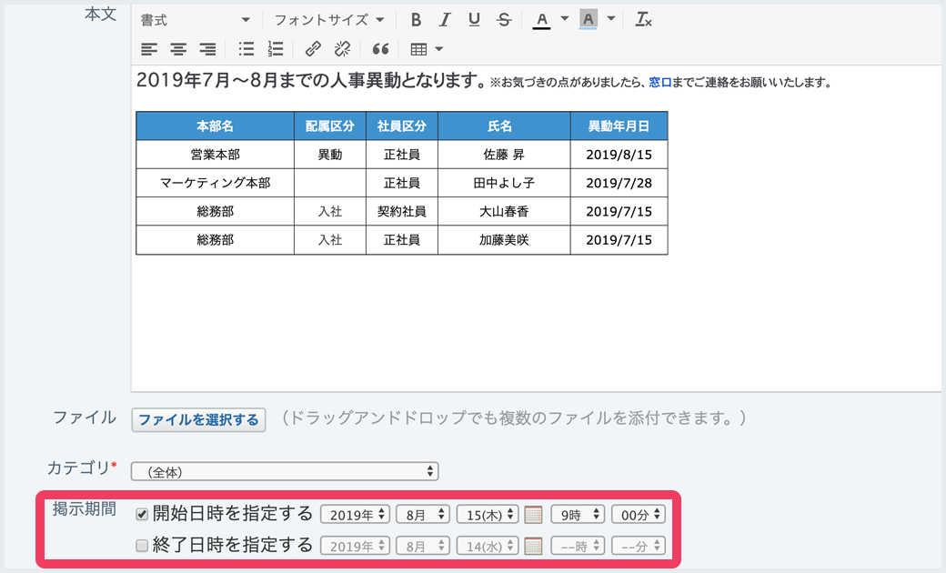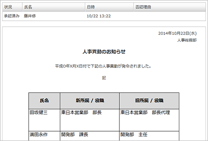 人事異動社内通知 見本2 のテンプレート│無料ダウンロード『日本の人事部』。
