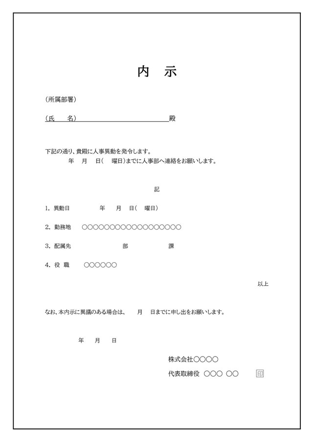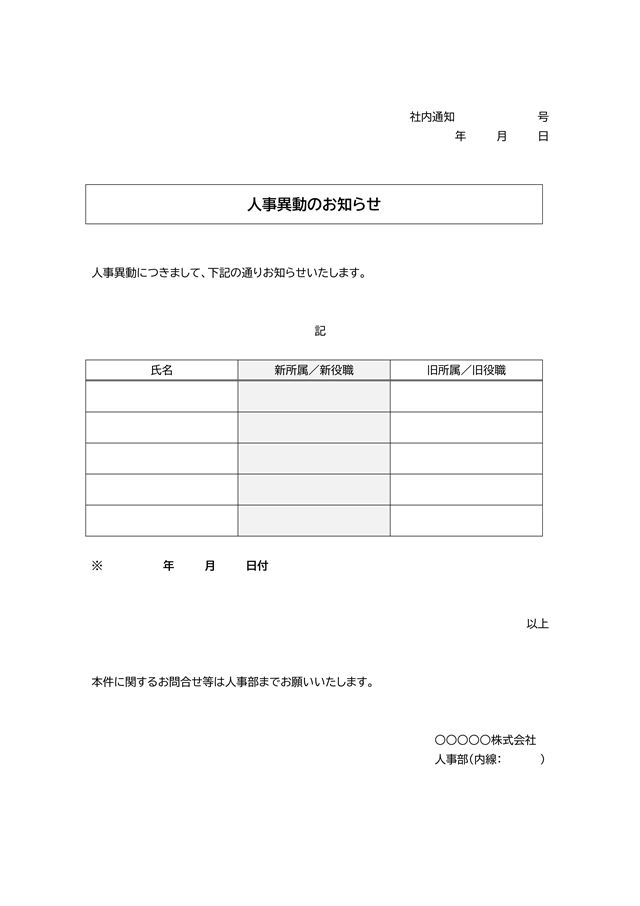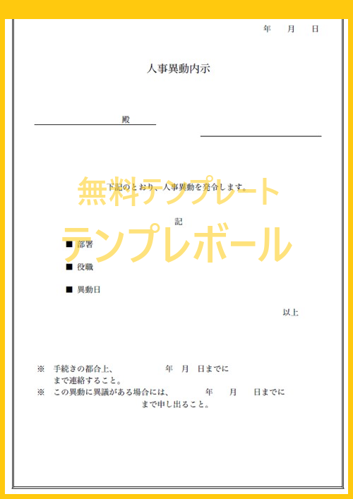 人事異動内示書のテンプレート ダウンロード無料!テンプレボール。
