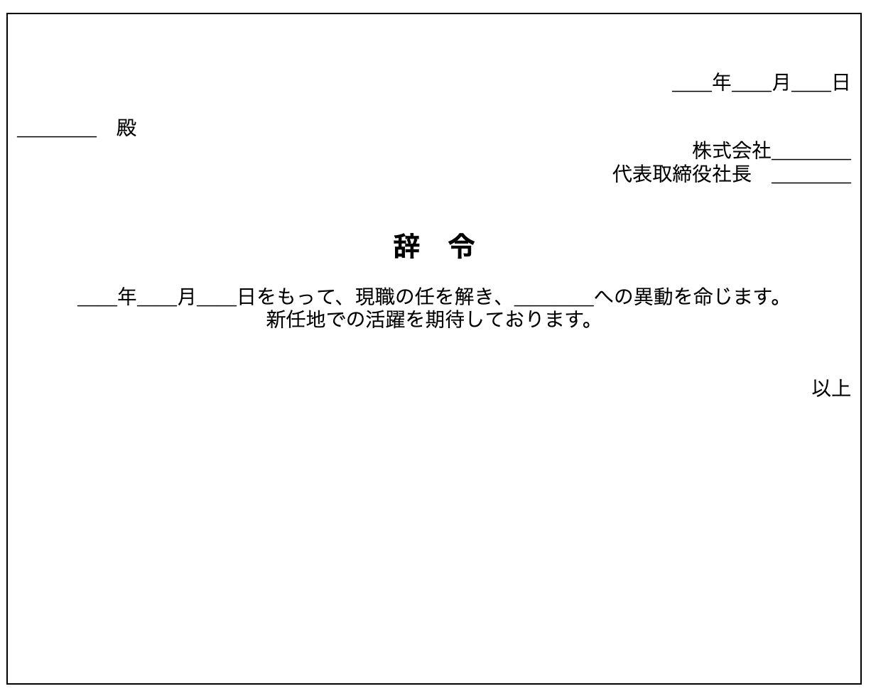 辞令 テンプレート 無料DL Word・Excel対応異動・転勤・解雇・昇進などの書き方と例文Bizroute。
