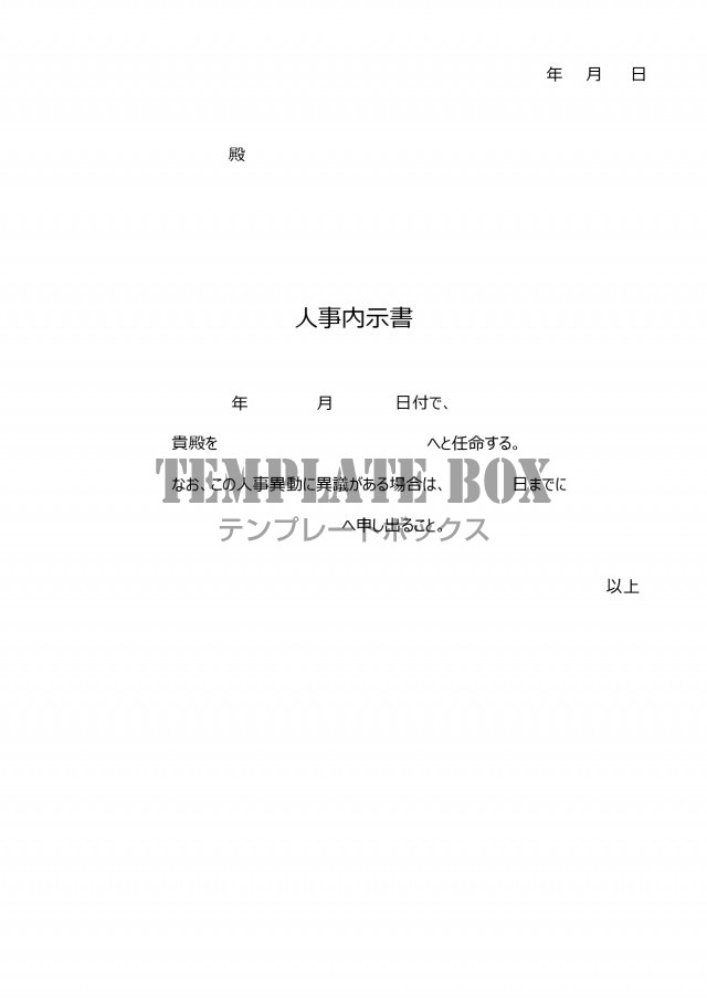 人事異動の内示書 例文ありで書き方が簡単なフォーマット ワードで簡単に編集無料テンプレートTemplateBox。