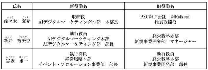 組織変更及び人事異動に関するお知らせPXC株式会社のプレスリリース。