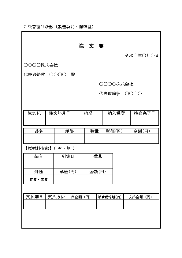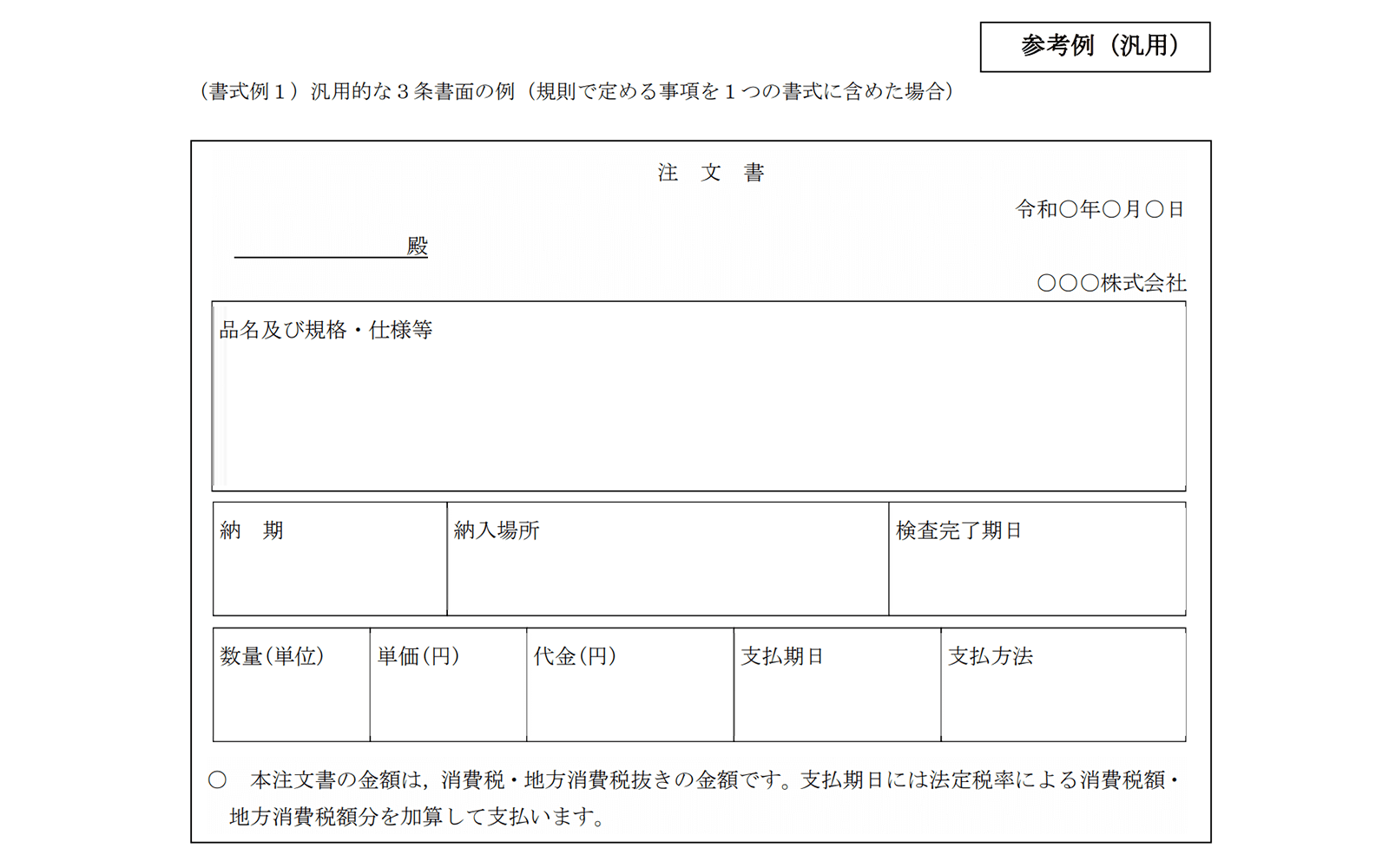 下請法に従い交付する発注書 3条書面 書き方やフォーマットを解説企業顧問・企業法務弁護士相談Cafe。
