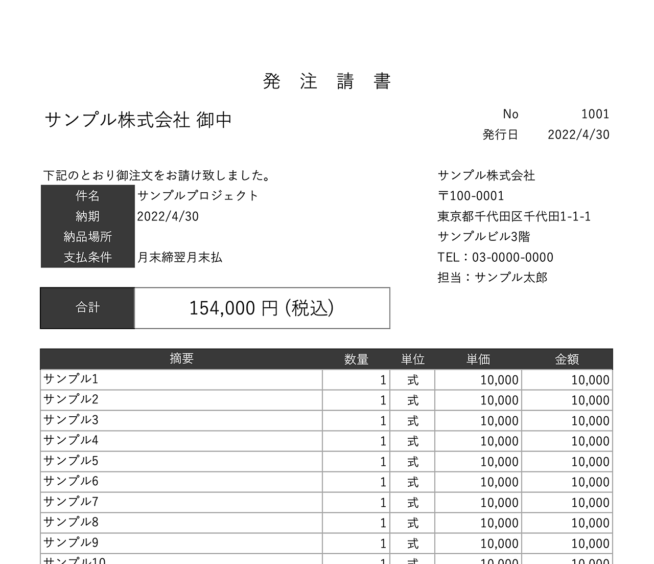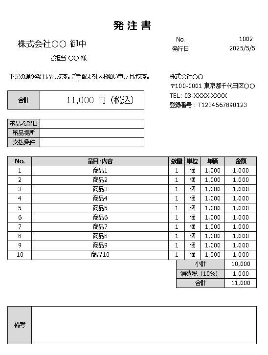 発注書 – エクセルテンプレート フォーマット集MakeLeaps。