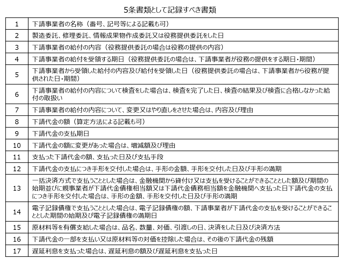 下請法5条書類 取引記録 の作成保存義務を解説! - 契約書の作成リーガルチェックは企業法務経験豊富な行政書士へ。