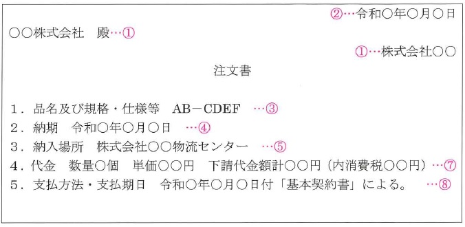 下請法に沿った注文書・発注書の書き方、記載事項の解説埼玉の弁護士グリーンリーフ法律事務所。