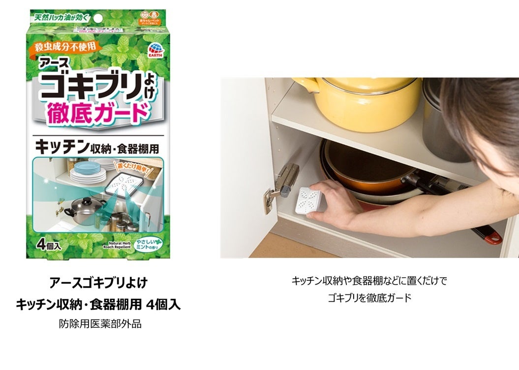 ゴキブリからキッチン周りを徹底ガード! 天然ハッカ油配合の『アースゴキブリよけ キッチン収納・食器棚用』を新発売アース製薬株式会社のプレスリリース。