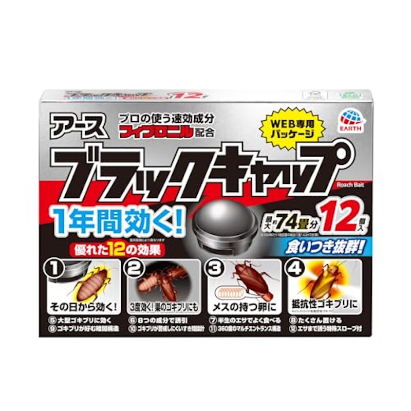 アース製薬 ブラックキャップ 1年間効く! 屋外用 ゴキブリ 侵入 対策 外に 置く 駆除用 毒餌剤ウエルシアドットコム。