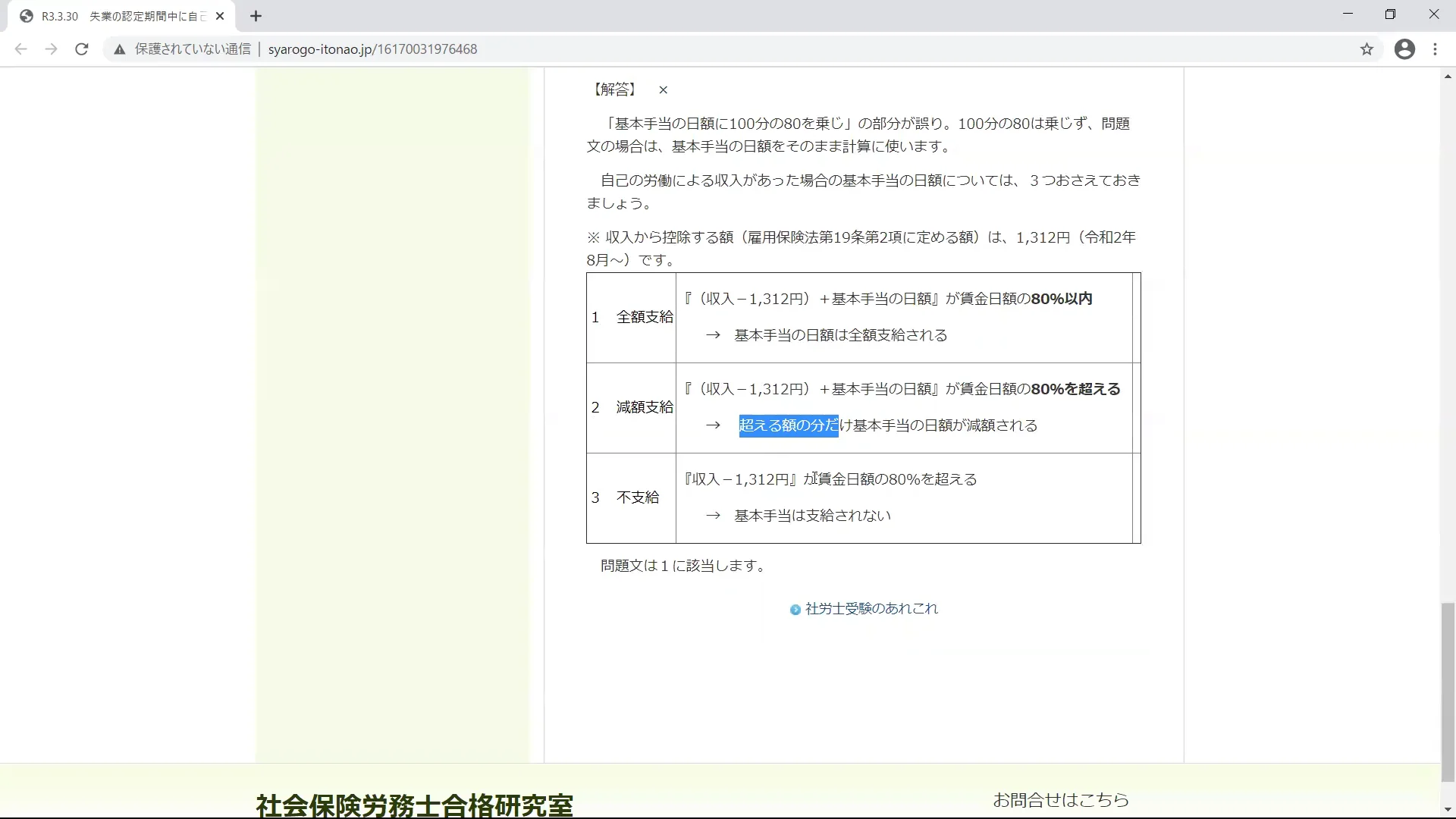 R5.3.4 自己の労働による収入がある場合の基本手当の減額 - 社会保険労務士合格研究室。