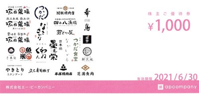 エーピーカンパニー 株主優待券の格安販売、購入なら金券ショップ チケッティ。
