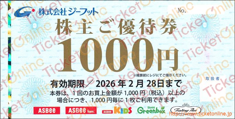ジーフット株主優待券 ASBEE 1000円 1枚 ~26年2月の購入はチケットオンラインで。