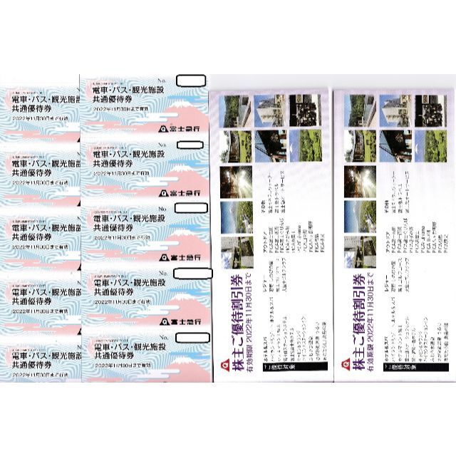 富士急行 株主優待券 共通優待券10枚 フリーパス1枚 割引券。