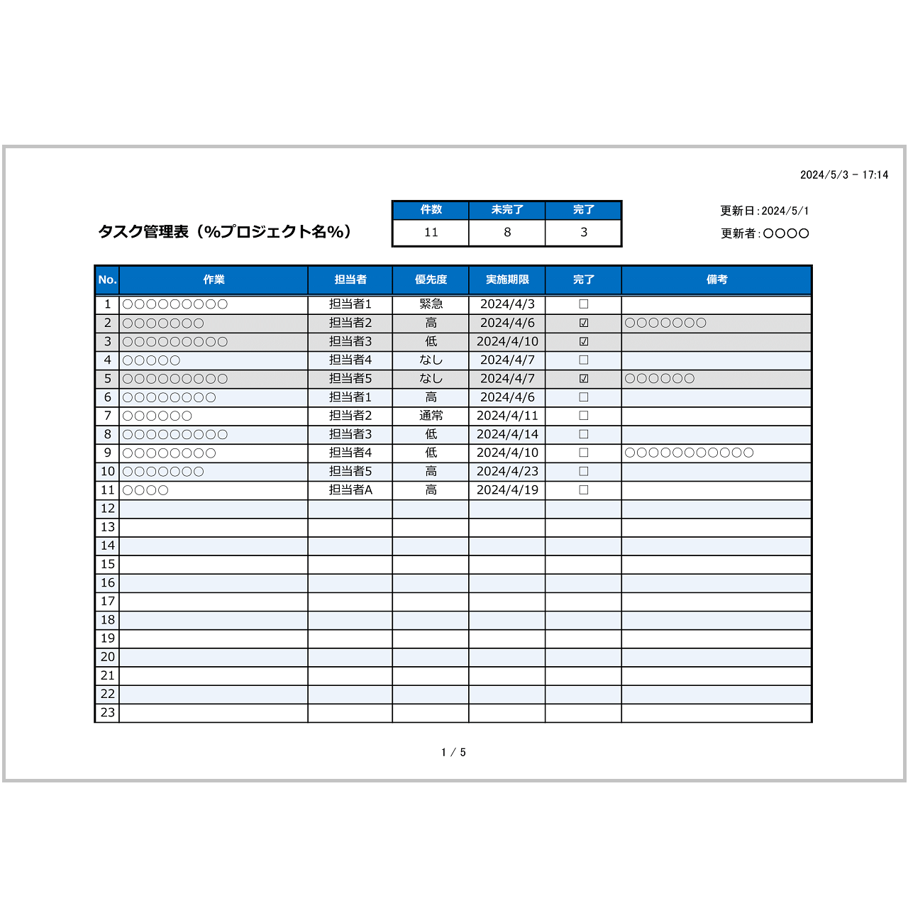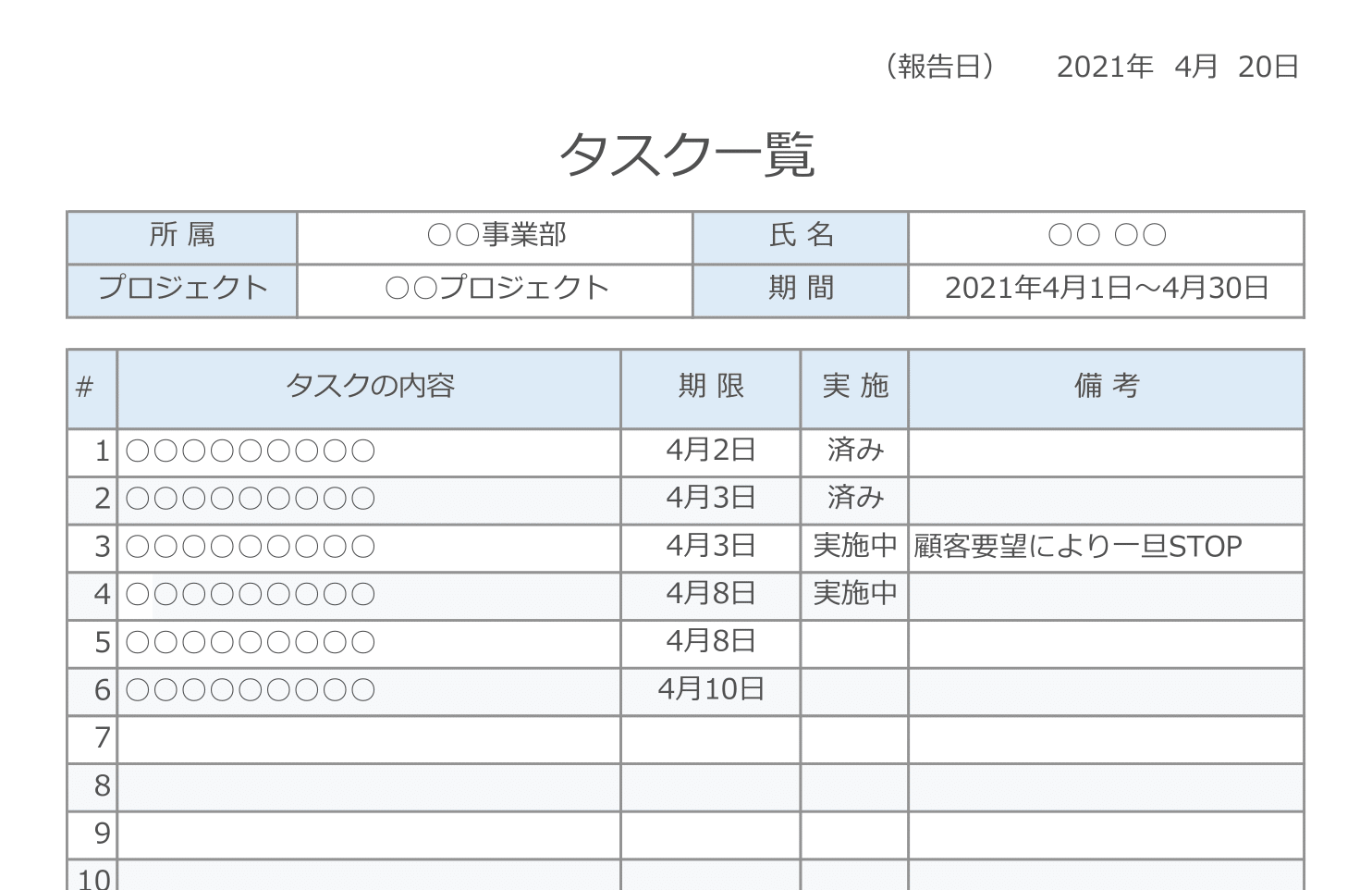 ビジネス タスク管理表 - 無料テンプレート公開中 - 楽しもう Office。