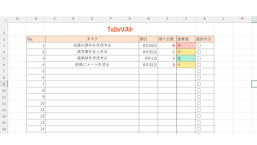 エクセルでタスクを管理する方法表を自作する方法やテンプレートも紹介Musubuライブラリ。