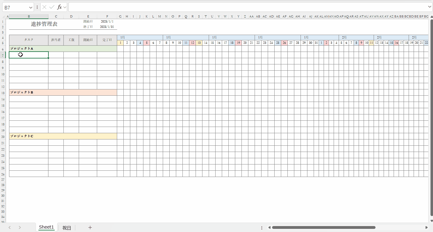 タスク進捗表Excel作成の書き方が簡単な無料テンプレート。