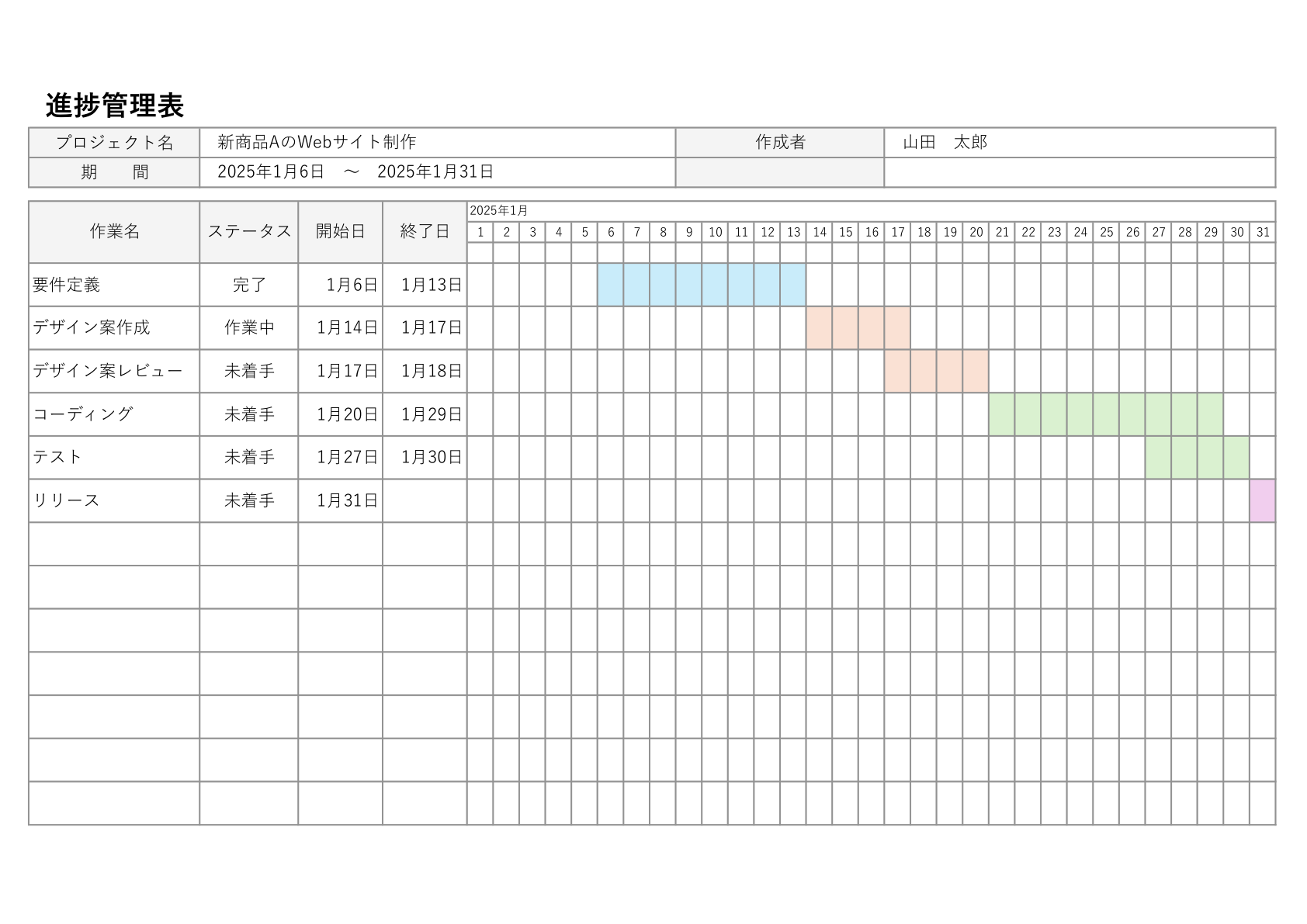 進捗管理表Excelテンプレート集無料・登録不要ビズ研。
