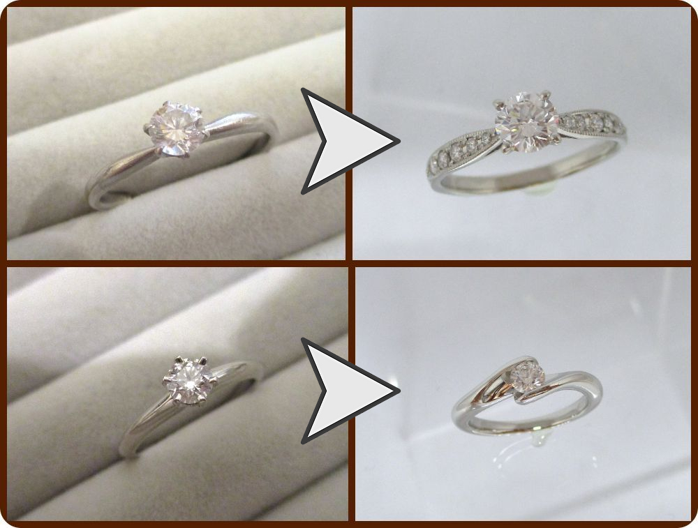 ダイヤの指輪を人気ブランドモデルのデザインにジュエリーリフォームジュエリーリフォーム・修理の専門店大阪・豊中にあるRe:Switch。