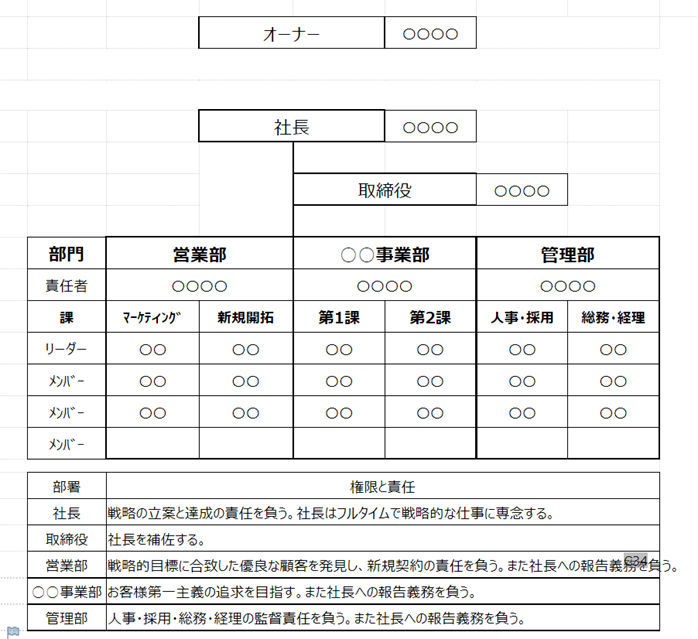 会社などで使う組織図の作成・作り方をエクセルでも使えるテンプレートと紹介。