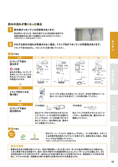排水口キッチンお手入れマニュアルタカラスタンダード。