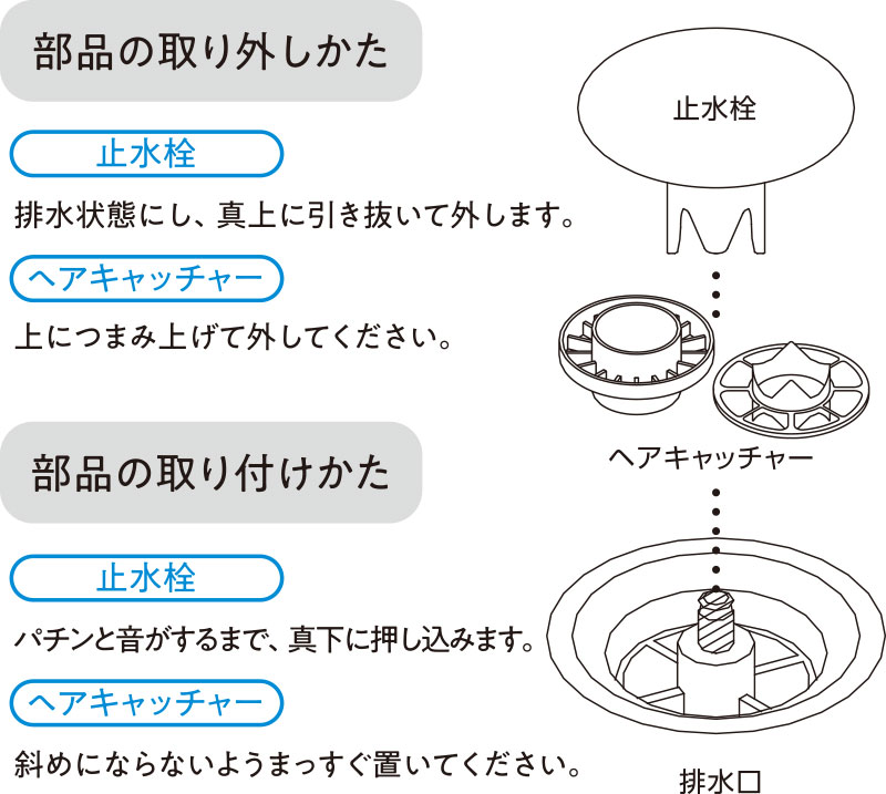 図解 お風呂の排水口の外し方とは?分解手順を解説レスキューラボ。