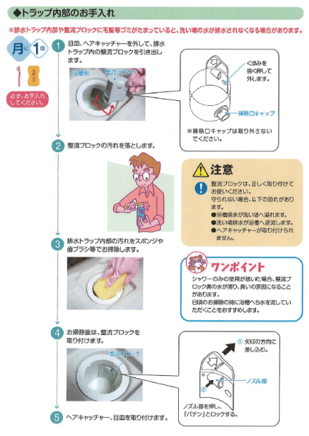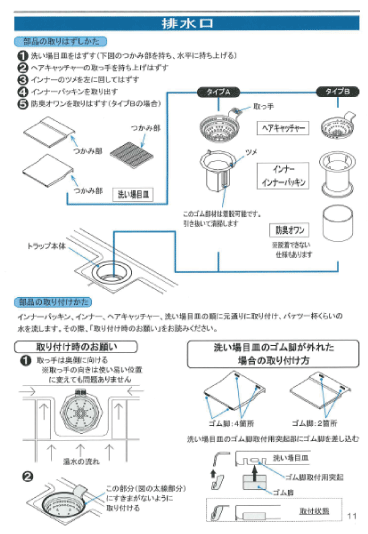 洗い場・排水口浴室・お風呂お手入れマニュアルタカラスタンダード。